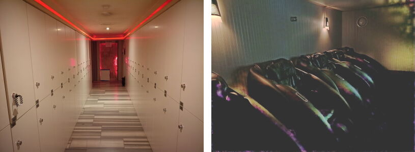 マッサージは人によるものではなく、右上画像のマッサージ機です。ところがこのマッサージ機が秀逸!めっちゃ気持ちいいです。